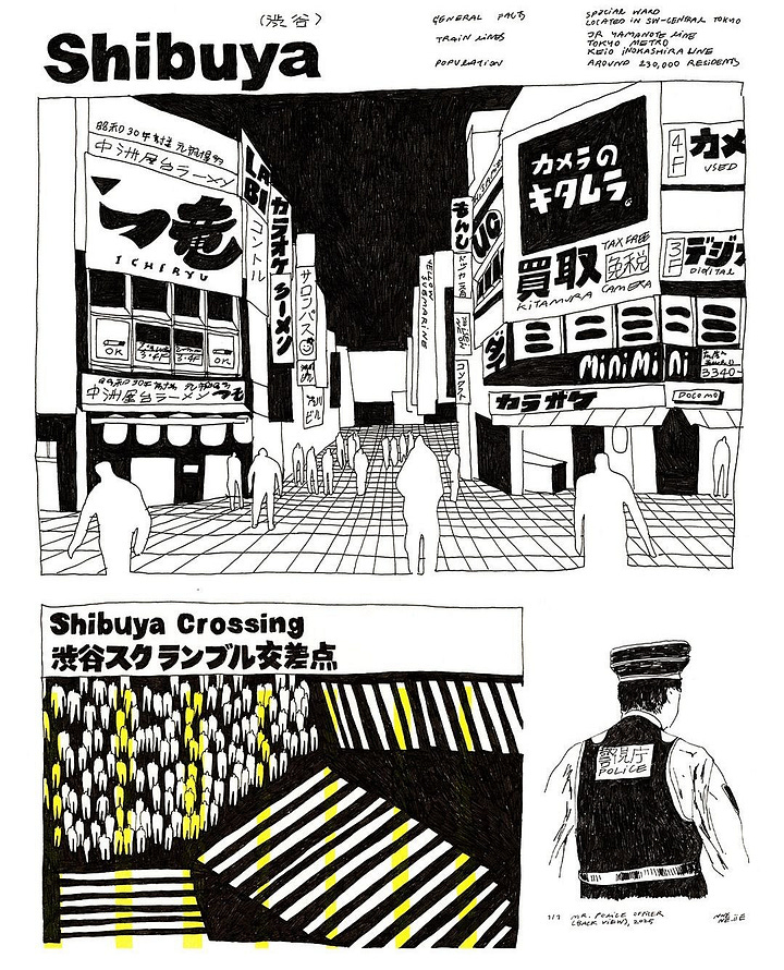 A artista @nnene.iie conecta dois universos em lançamentos recentes: uma Shibuya reinterpretada em ilustração e uma colaboração serigrafada com @leraclet. O mesmo olhar sensível, em formatos distintos.
